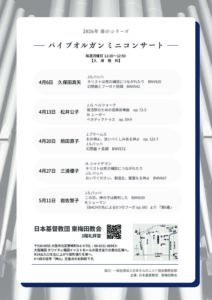 ★パイプオルガンミニコンサート ー2026年春のシリーズー のお知らせです。