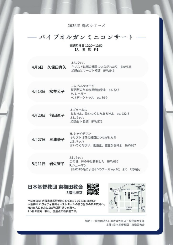 パイプオルガンミニコンサート ー2026年春のシリーズー
